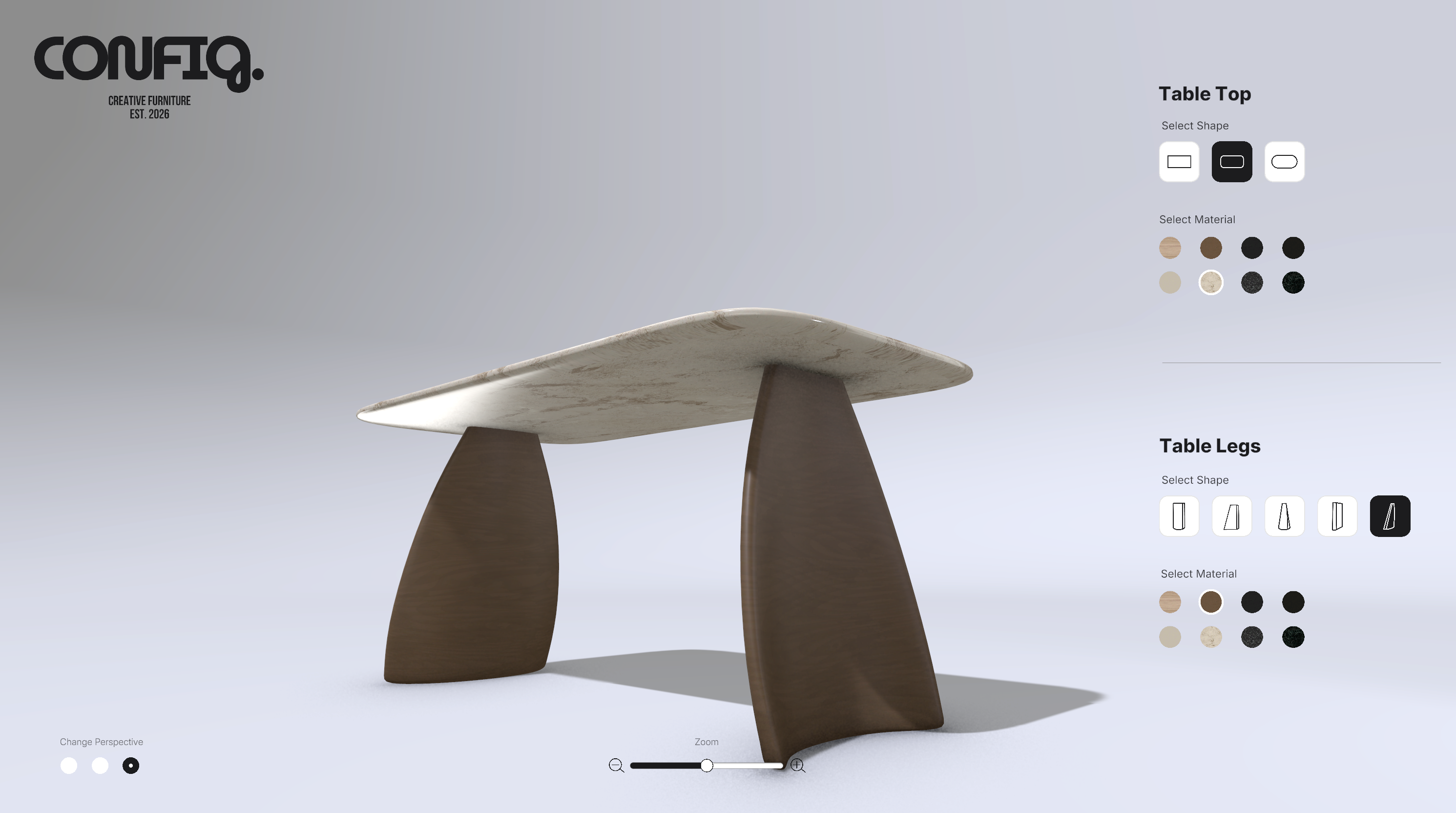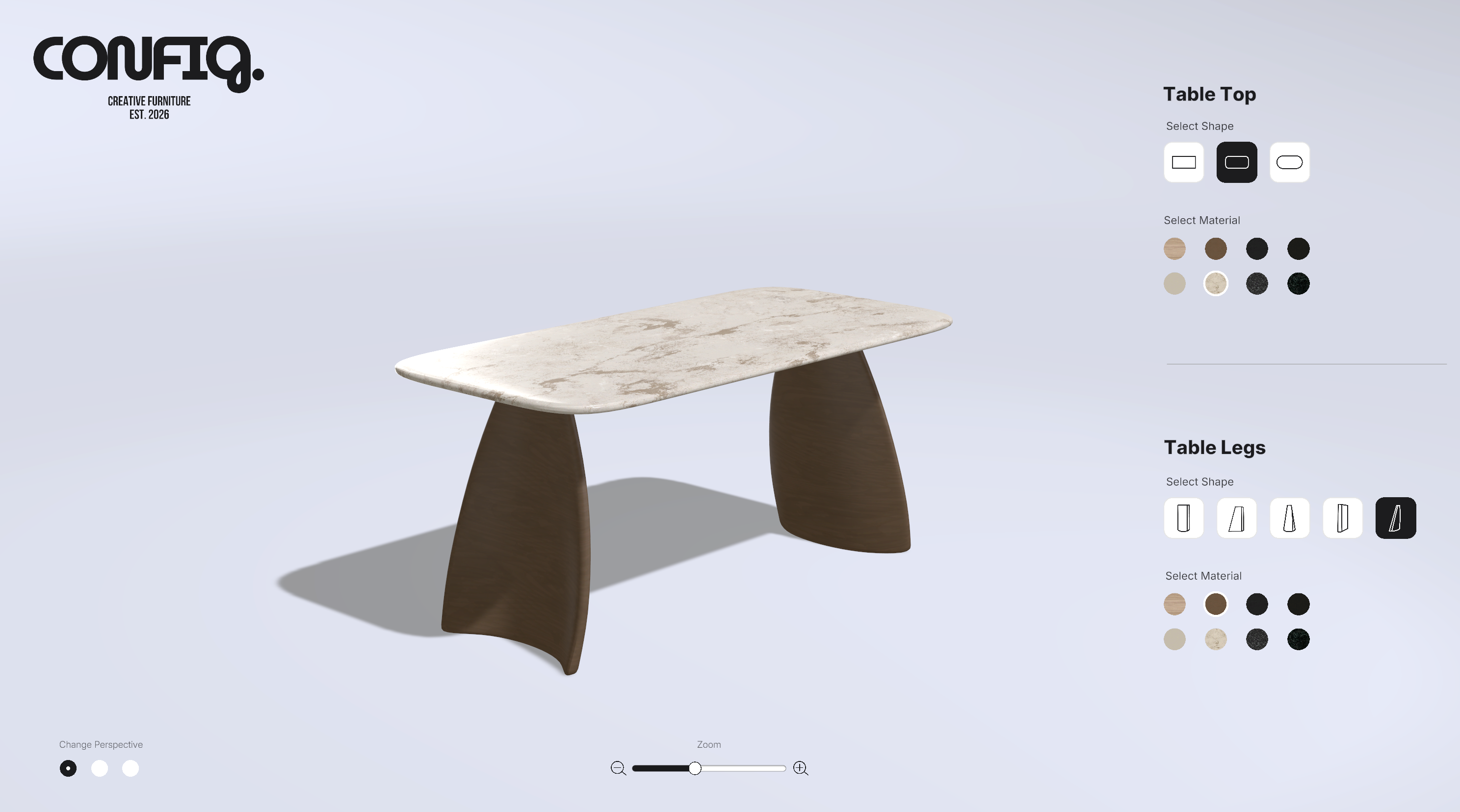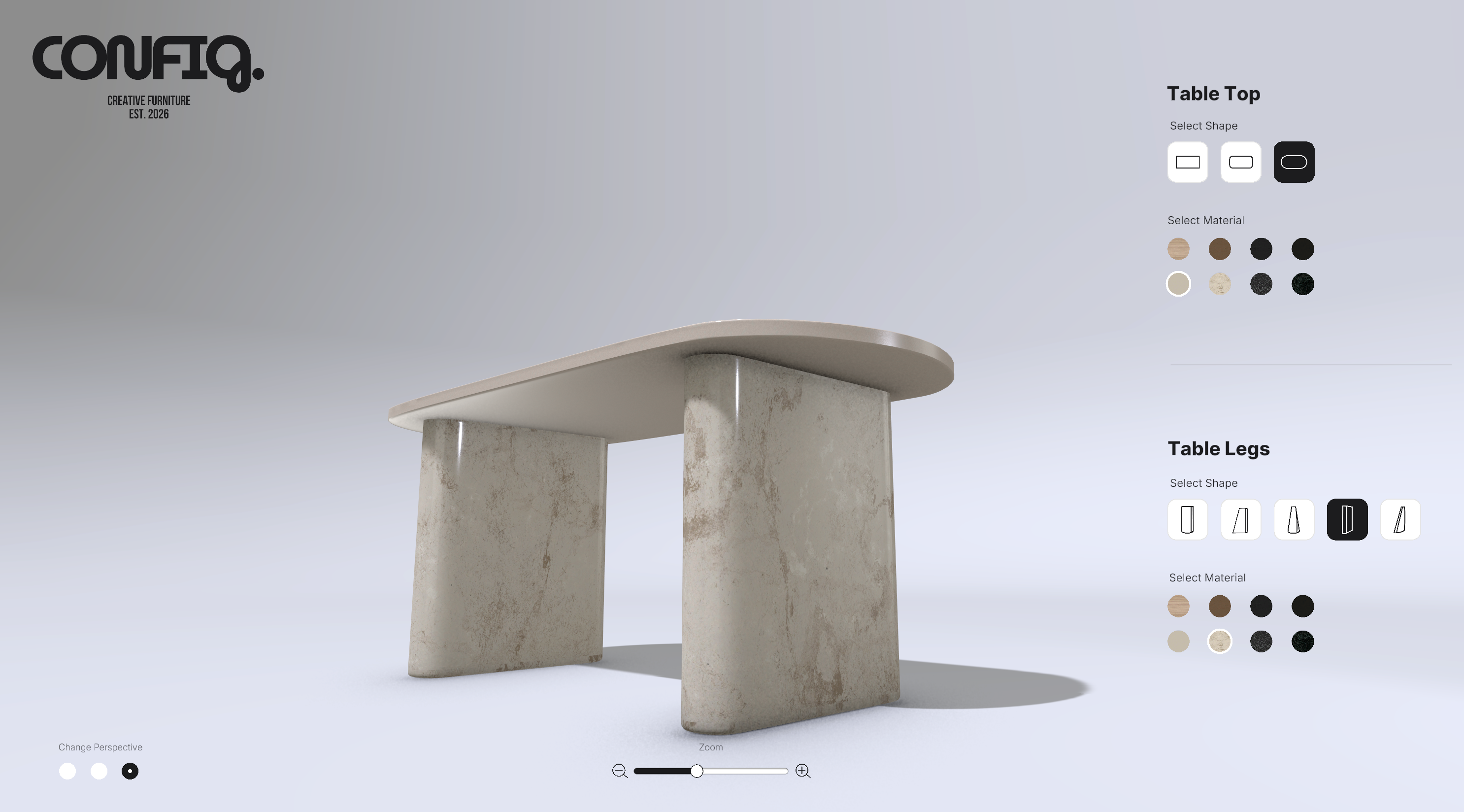 CONFIG. is an interactive 3D Table Configurator built in Unity, designed to explore Form, Material and Structure with immediate Visual Feedback.